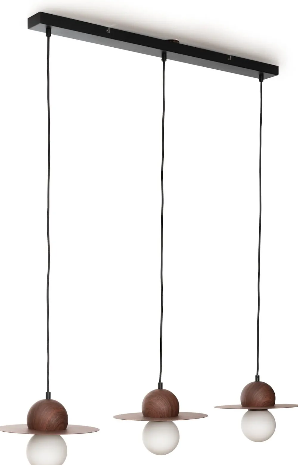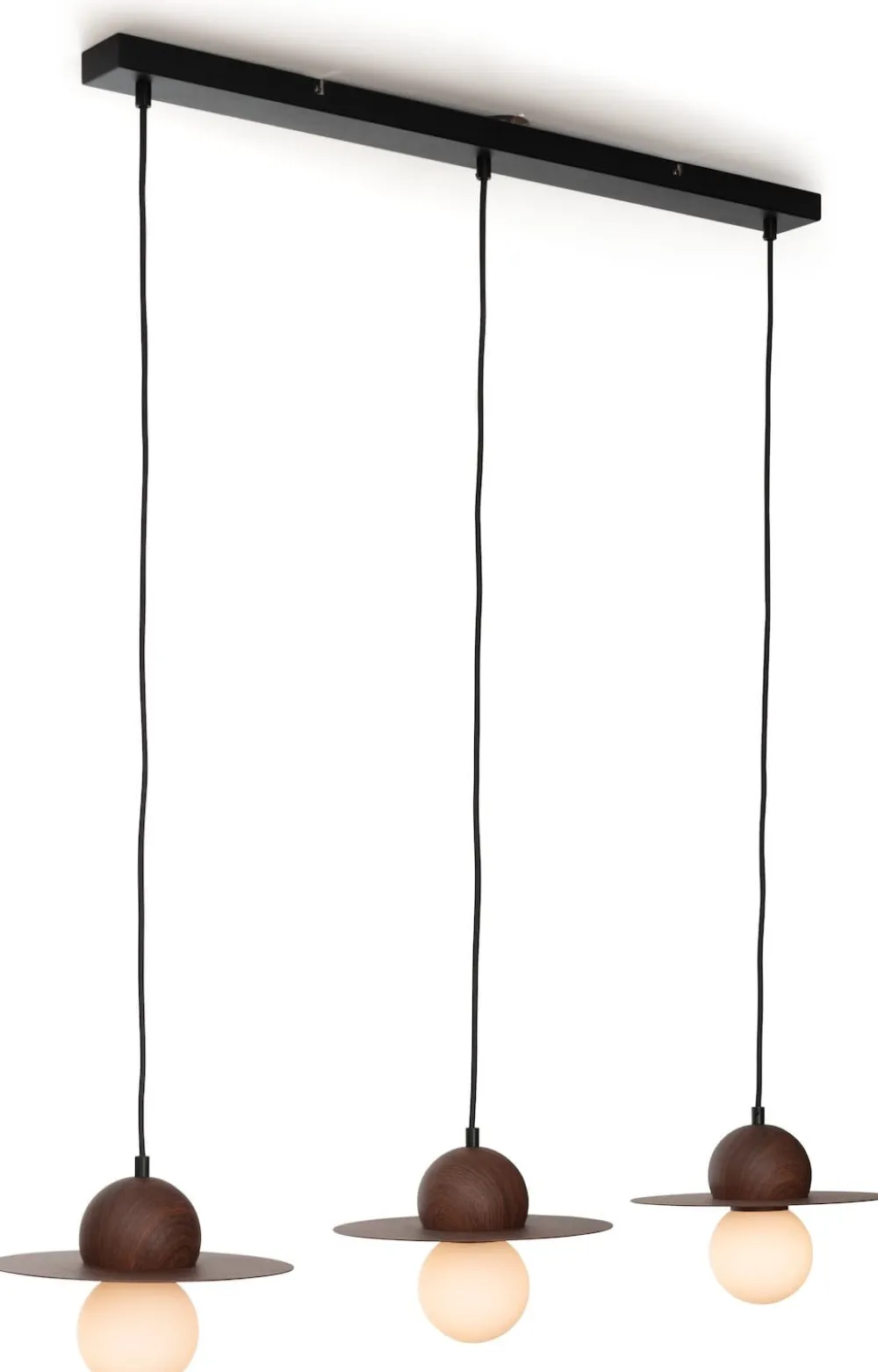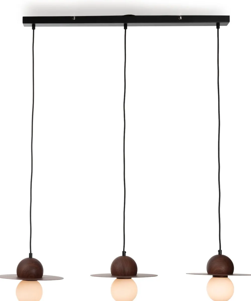 Avec une belle lampe au-dessus de votre table, vous complétez parfaitement votre coin repas, et si vous aimez le design moderne, cette suspension Ufo de COCOmaison pourrait bien être votre coup de cœur. Les abat-jour remarquables avec un aspect noyer donnent une touche rétro et sont presque indiscernables du vrai bois. Les globes lumineux blancs offrent également un éclairage doux et agréable. De plus, Ufo se marie parfaitement avec la lampe de table et le lampadaire assorties. À noter : composée à 30 % de verre et à 70 % de métal, elle a une largeur de 50 cm et est réglable jusqu’à une hauteur de 160 cm.
