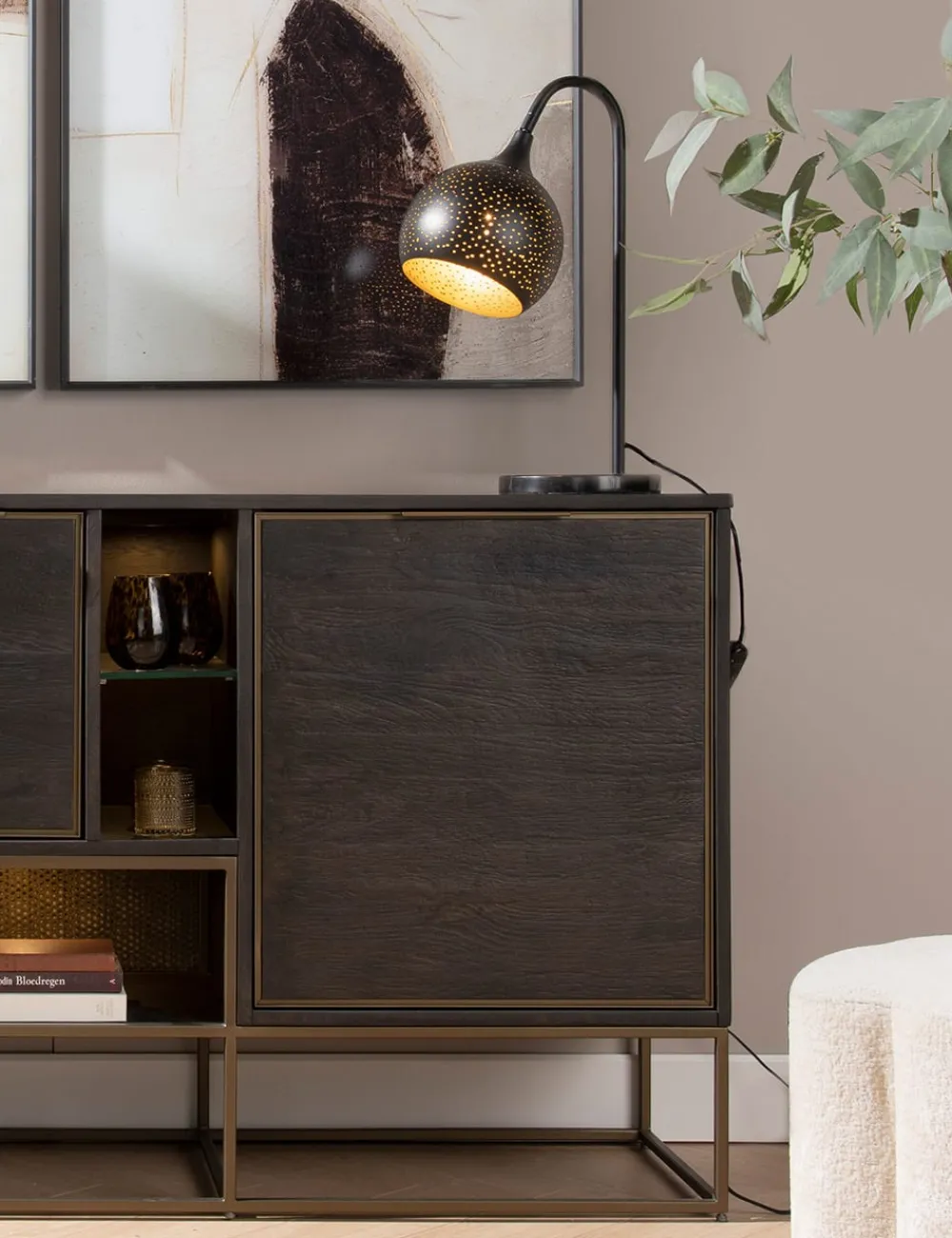 Rien de tel qu’une lampe de table pour créer une ambiance à la maison ! Les lampes de table garantissent un effet chaleureux dans votre séjour ou votre salle à manger. ARJEN, cette lampe de table noire moderne de COCOmaison est une lampe robuste en métal qui trouve sa place dans un intérieur moderne. Les petits trous dans le métal créent un splendide effet lumineux au mur et au plafond. Comme ARJEN est dimmable, vous créez vous-même l’ambiance que vous voulez en fonction du moment de la journée. Cette lampe est fournie sans ampoules. Découvrez également les autres lampes de cette série !