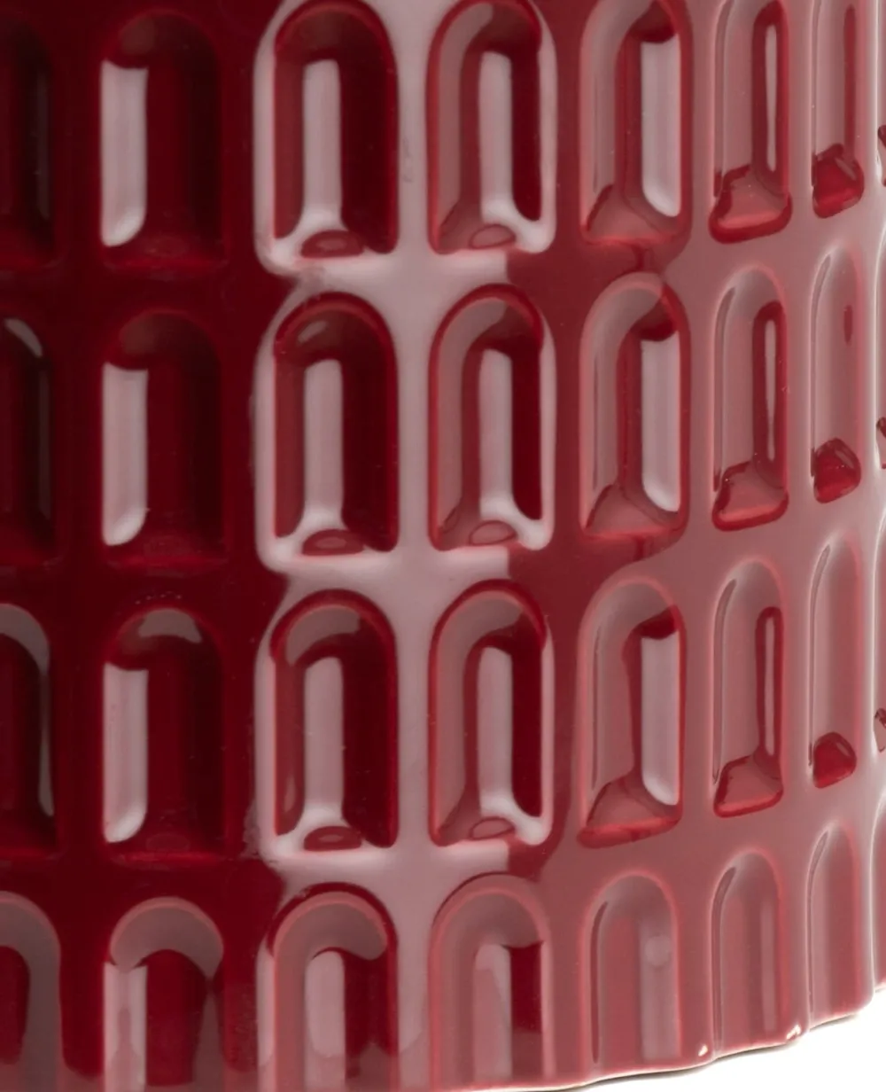 Adieu vieille boîte à biscuits ennuyeuse et bonjour Bisko ! Ce joli pot de COCOmaison est non seulement super pratique, mais il a aussi fière allure. Le pot mesure 14 x 14 cm, ce qui en fait l’endroit idéal pour vos biscuits, bonbons, élastiques ou autres petits objets. Bisko a une belle couleur bordeaux luxueuse et un motif inspiré des anciens arcs romains. Ainsi, ce pot s’inscrit parfaitement dans la tendance des classiques revisités. Bisko est fabriqué à partir de 90 % d’argile et de 10 % de glaçure, ce qui lui donne également un magnifique éclat.