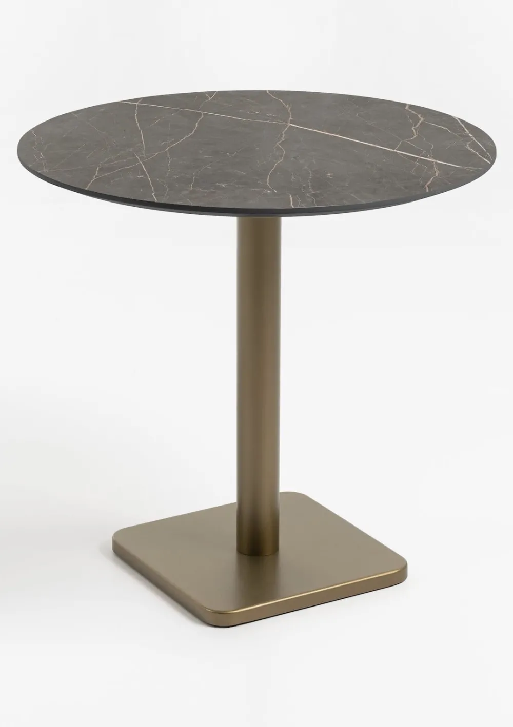 Aménager un petit coin repas ? COCOmaison a la solution pour toi ! Dans notre série Brest, tu trouveras de nombreuses petites tables de bistrot et de bar. Les tables ont toutes un pied en métal, disponible en or ou en noir, et un plateau en chêne, en pierre ou en marbre. Tu peux également choisir parmi des variantes rondes, carrées ou rectangulaires. Avec toutes ces différentes options, tu peux choisir parmi pas moins de 72 tables différentes ! Super pratique et élégant donc ! Voici la table de bistrot ronde avec un diamètre de 80 cm, un pied doré et un plateau en marbre de couleur onyx.