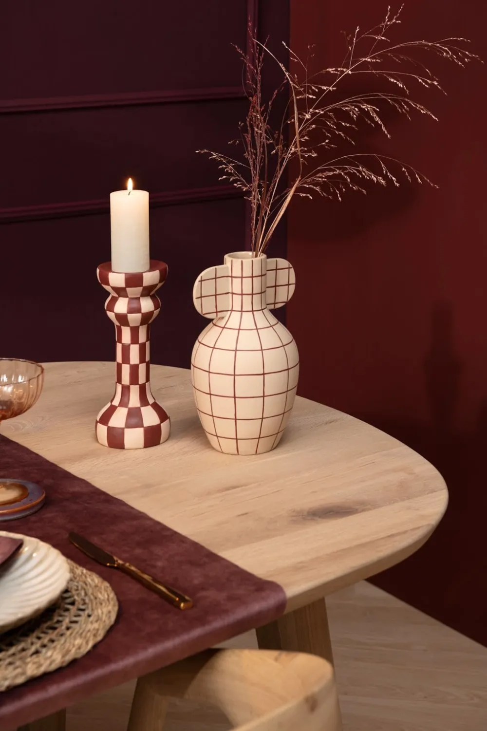 Ajoutez une touche de charme classique à votre intérieur avec le chandelier Jacob de COCOmaison. Ce chandelier élégant mesure 24 cm de haut et est fabriqué en céramique. Il a une finition mate raffinée en bordeaux et blanc. Le motif en damier donne au chandelier une texture subtile et une apparence unique. Grâce à sa forme classique, le chandelier Jacob s’intègre parfaitement dans les intérieurs modernes et traditionnels. Combinez le chandelier Jacob avec le vase assorti de COCOmaison pour un ensemble harmonieux et élégant.