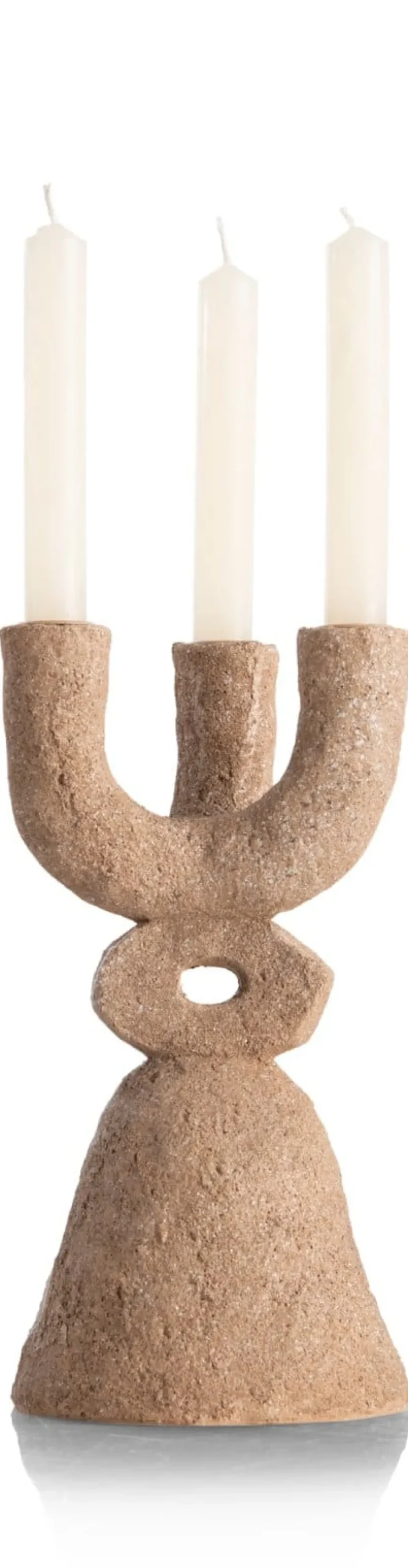 Le bougeoir JUNE de COCOmaison ressemble à une découverte archéologique d’une civilisation ancienne. Grâce à son design pur et artisanal, il s’inscrit totalement dans les dernières tendances en décoration intérieure. Il a un aspect de pierre brute et est de couleur beige clair. Ce bougeoir de 27 cm de haut est prévu pour trois bougies. Si vous voulez vraiment le mettre en valeur, optez pour des bougies d’une forme ou d’une couleur spéciale. JUNE existe aussi dans un modèle un peu plus haut, prévu pour deux bougies.